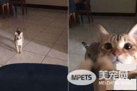 桃园8个月大的猫咪「毕鲁」平时亲人聪明,没有特别训练,就会玩123木头人。画面中,牠眼神专注,看见人遮镜头,就知道要快速往前走,一看牠还会手悬空「完美定格」,最后「嗯」一声跳到椅子上,抓到当鬼的奴才...