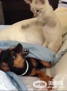 冬天的寒风总让人不想离开被窝,要是睡不饱还被吵醒,那种感觉一定更差!脸书粉丝专页Daily MailAnimals分享了一则白猫疯狂挑衅黑狗的影片,猫咪似乎不想让狗狗安稳的睡,于是开始动手动脚,短短...