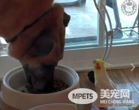 用餐还能欣赏美妙歌声,是哪间高级音乐餐厅呀?国外一只狗狗低头专心吃饲料时,家中的玄凤鹦鹉竟站在一旁高歌,清脆嘹亮的声音似乎让狗狗的食欲更好了。网友们看完也笑说,这一定是整间音乐餐厅中最好的位子! ...